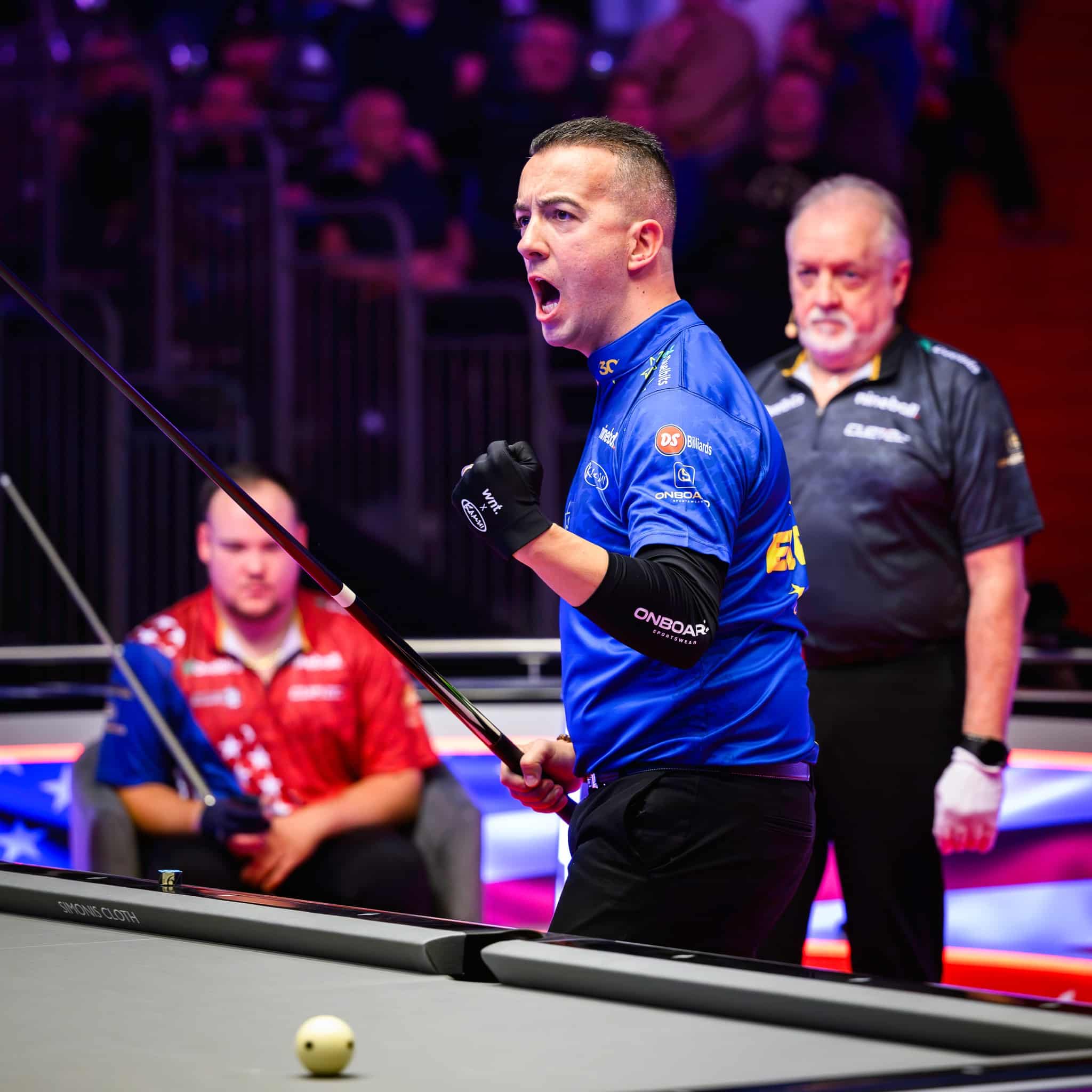 Mené 9-2 à la fin du jour 3, il semblait bien difficile aux partenaires de Shane Van Boening et Fedor Gorst de rattraper leur retard, sous le regard goguenard d'un Jayson Shaw, jamais en retard d'un troll, et d'une salle toute acquise à la cause des bleus et or.